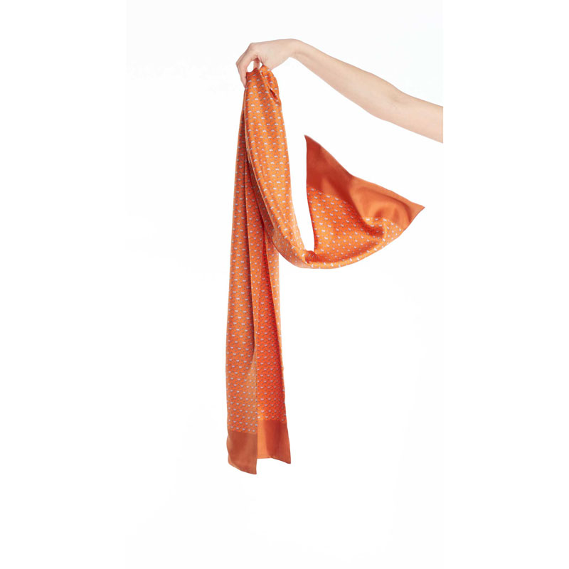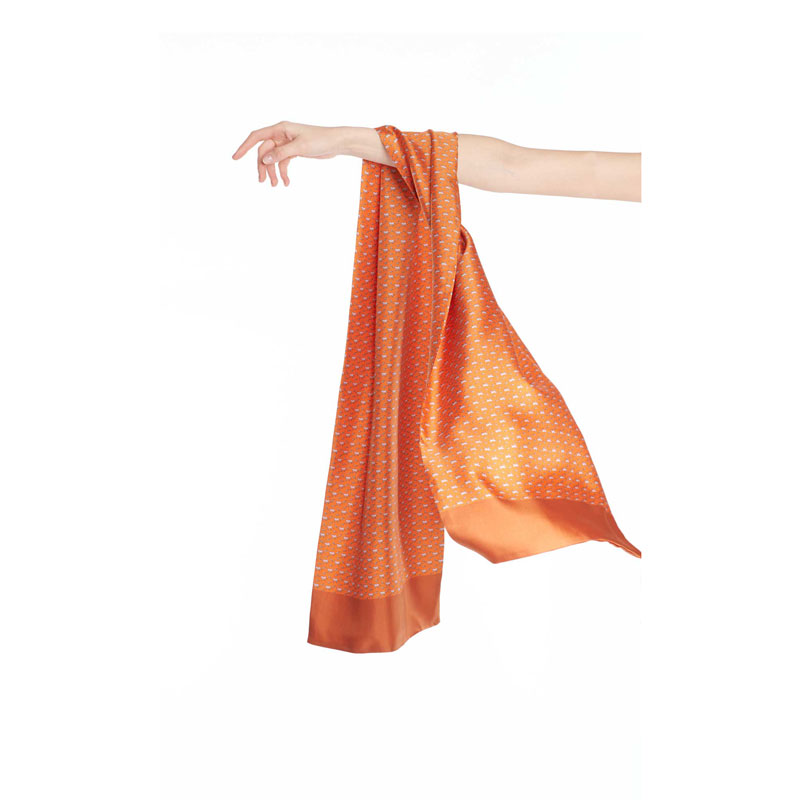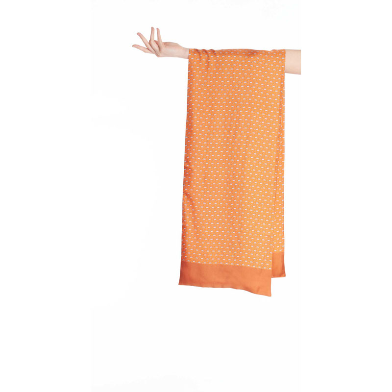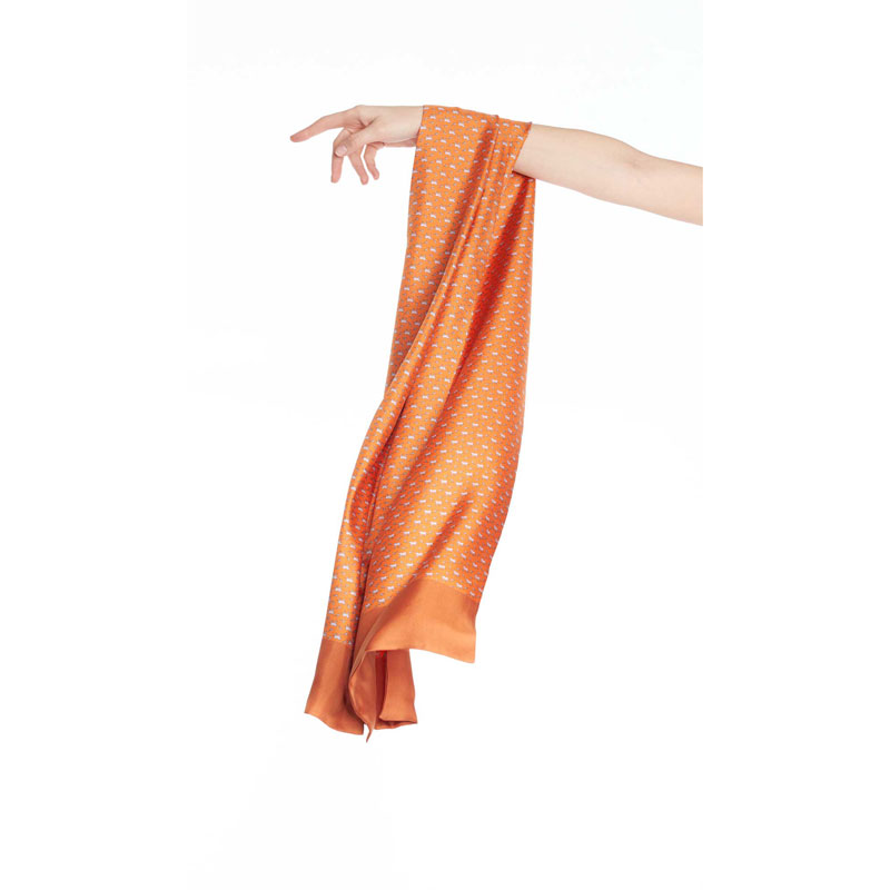 敦和風(fēng)雅真絲圍巾 藏藍(lán) 桔色 175*32厘米